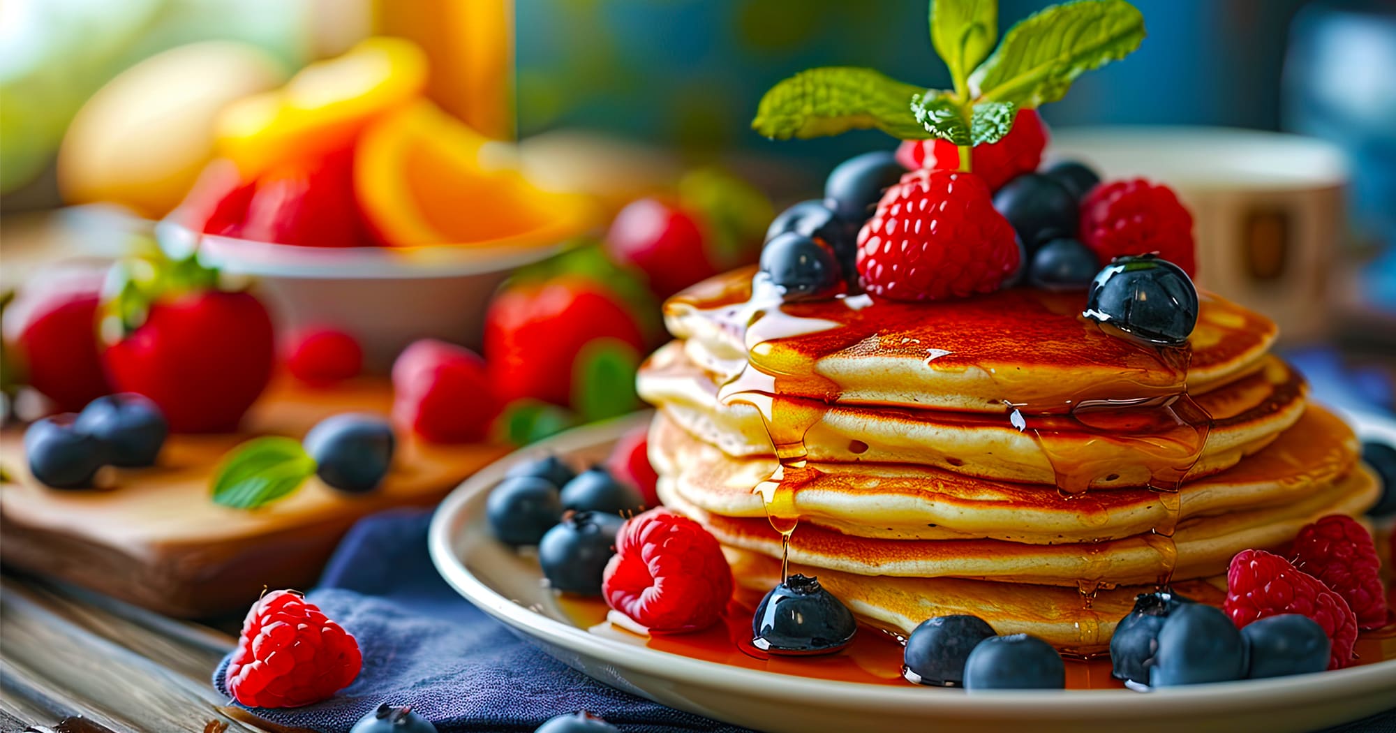 Cotton clouds! The delicate melt-in-your-mouth pancakes served with berry compote